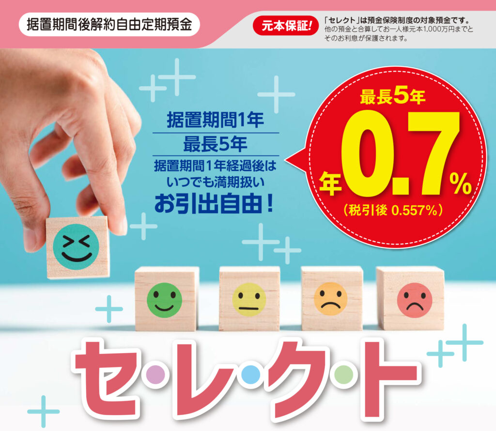| 適用金利 | 年利 0.7% (税引後0.557%) |